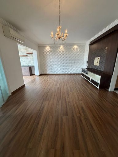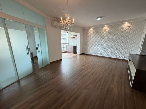 Apartamento de 110m com 03 quartos, sendo 01 suíte com closet, banheiro social, sala de estar e jantar, lavabo, escritório, lavanderia, sacada e 02 vagas de garagem (lado a lado).