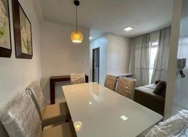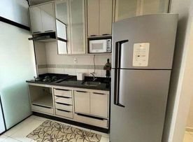 Apartamento mobiliado com 02 quartos, sendo 01 suíte, banheiro social, sala de estar e jantar integrado com cozinha, lavanderia, sacada e 02 vagas de garagem.