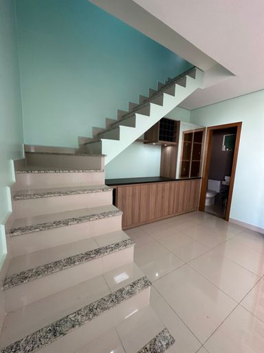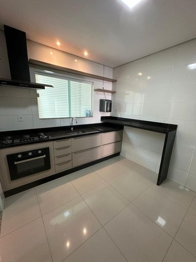 Sobrado semi mobiliado com 03 suítes, lavabo, sala de estar e jantar, cozinha, área de serviço e 02 vagas de garagem.