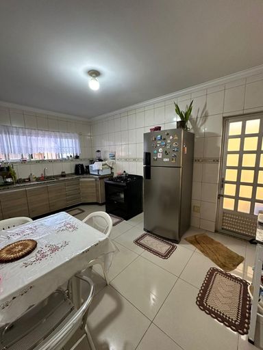 Sobrado com 04 quartos, sendo 01 suíte, banheiro social, sala de estar e jantar, cozinha e área na frente.